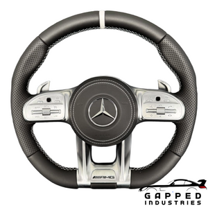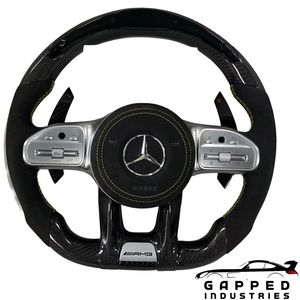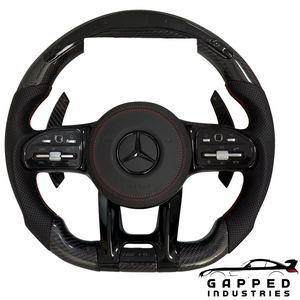 Upgrade your driving experience with the Gapped Industries Carbon Fiber Steering Wheel, designed exclusively for Mercedes-AMG and Mercedes-Benz models. Crafted with precision, our wheels combine luxury aesthetics with motorsport-inspired performance, ensuring both comfort and control behind the wheel.